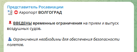 «От Министерства обороны поступила информация об угрозе БПЛА. Локально в местах возможной угрозы могут работать системы оповещения. Все экстренные службы приведены в полную готовность»