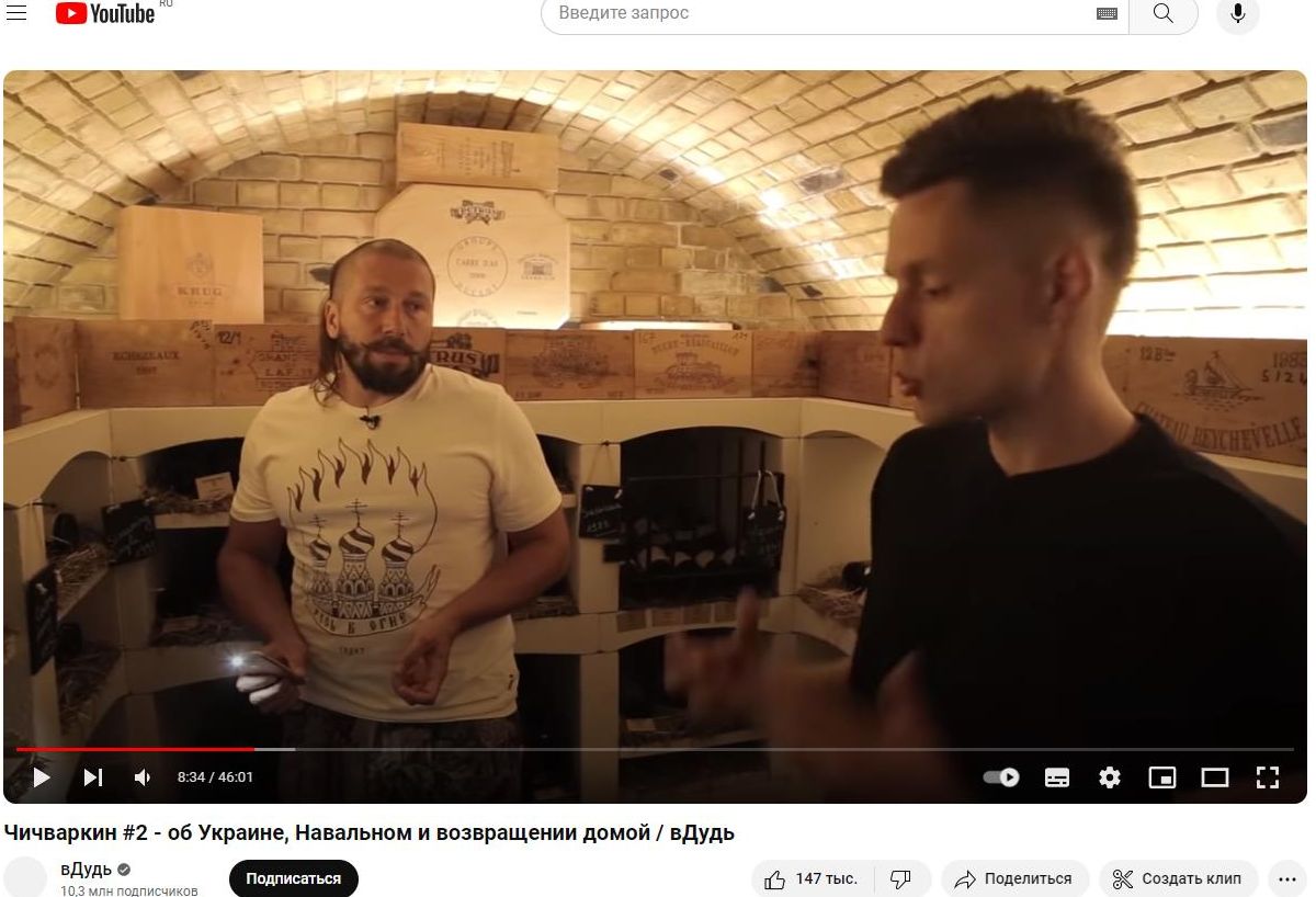 Такие у "главного интервьюера" были собеседники — вроде беглого бизнесмена Чичваркина*. Скриншот: ютуб-канал "вДудь"