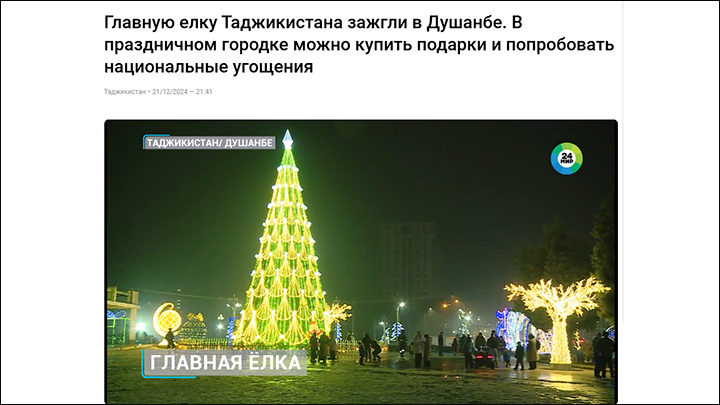 Такая же история – в Ташкенте (Узбекистан) и Бишкеке (Киргизия): ёлки устанавливают в самых многолюдных местах – на центральных площадях столиц. Между тем приезжие именно из этих стран чаще всего выступают против празднования Нового года в России, называют его "дьявольским поклонением мёртвому дереву", а хороводы вокруг ёлочки – "пляской шайтана".
