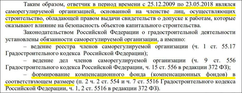 Суд установил, что СРО с момента основания и до даты подачи искового заявления (май 2018-го) должен был следовать букве соответствующего закона. А именно — вести тщательный учёт членов структуры (как действующих, так и прекративших своё участие) и формировать за счёт сборов с участников специальный компенсационный фонд.