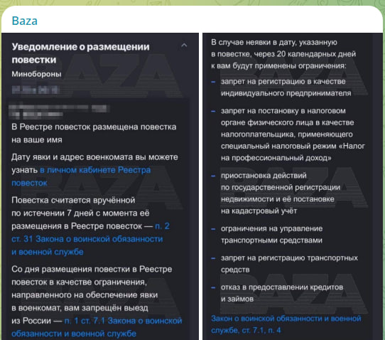 Началось: Реестр повесток заработал. Выезд из России запрещён. Заявление начальника организационно-мобилизационного управления