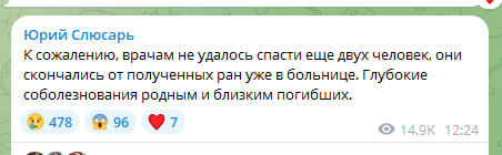 В Таганроге в результате атаки БПЛА погиб один человек, еще двое получили ранения, их доставили в больницу, но от полученных ран они также скончались, сообщил губернатор Ростовской области Юрий Слюсарь.