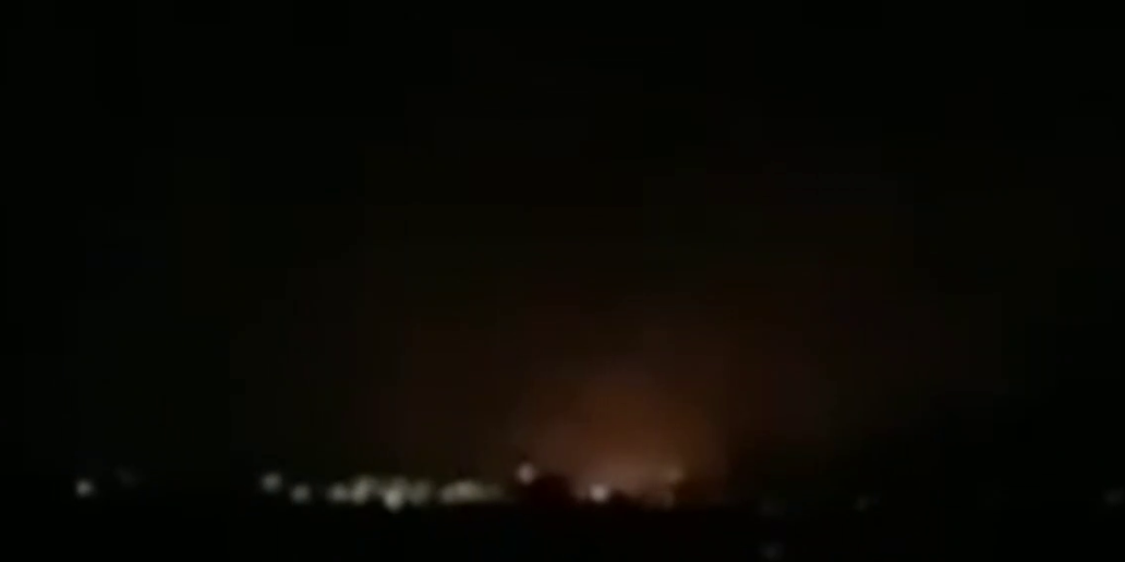 На видео, которое, как утверждается, снято в Новокуйбышевске в период атаки БПЛА, слышны взрывы, на горизонте в городской застройке заметны вспышки.