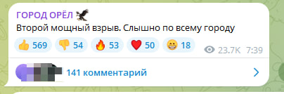 Очевидцы, по сообщениям некоторых телеграм-каналов, также утверждают, что Орел якобы атаковали ракетами. Однако официальной информации о ракетном ударе, в частности по Орловской ТЭЦ, не было. Предупреждения о ракетной опасности также не поступали.