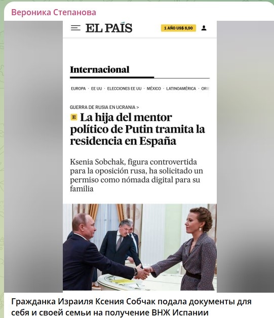 Как сообщает издание El Pais, Собчак, получив пятилетнюю визу во Францию, которая позволяет ей свободно перемещаться по странам Шенгенской зоны, направилась в Испанию для подачи заявления на постоянное проживание. Её заявление подано по программе для цифровых кочевников, но на данный момент оно всё ещё находится на стадии рассмотрения.