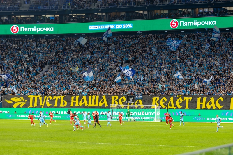 Часть болельщиков «Зенита» кричала с трибуны слово «свинья» во время оглашения стартового состава «Спартака» в матче Кубка России.