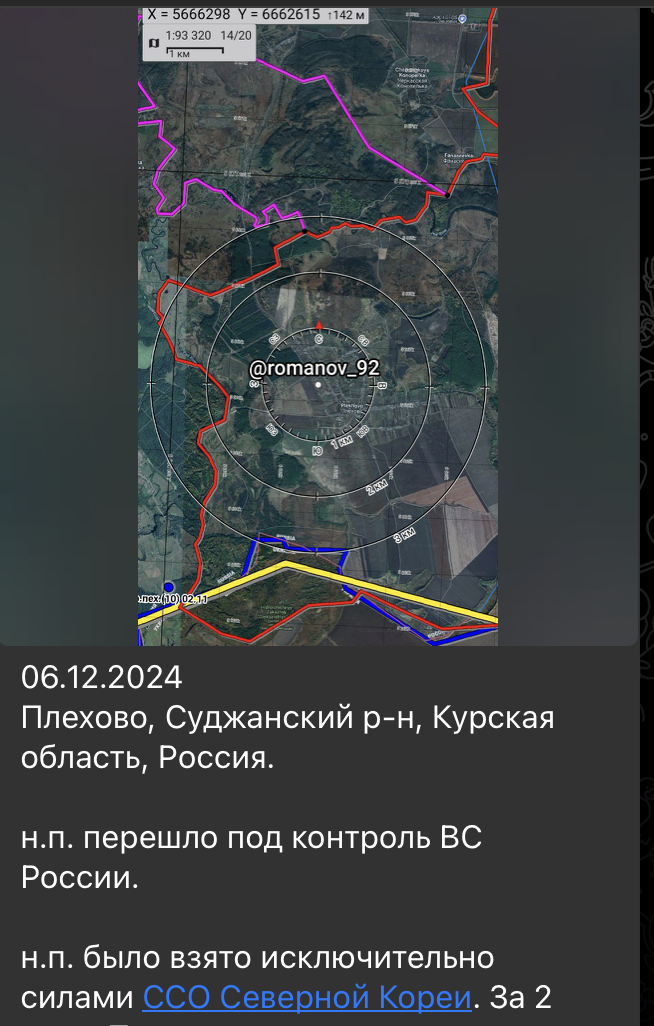 Военный корреспондент Юрий Котенок подтвердил, что бойцы корейских ССО действительно освободили населённый пункт 6 декабря. По его словам, они преодолели два километра по минному полю. Затем быстро ворвались в населённый пункт и уничтожили украинские силы.