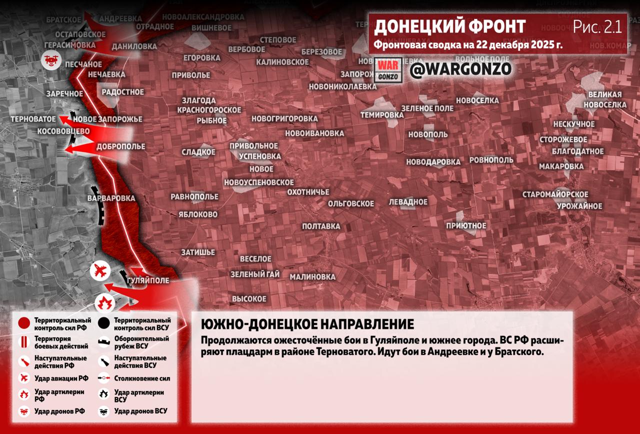 Сводка СВО за 22 декабря: ВСУ отошли с позиций на границе в Сумской области, карты боевых действий