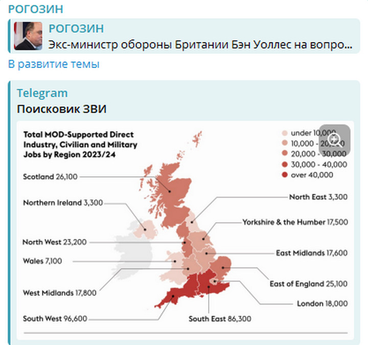 После громких заявлений представителей власти Великобритании экс-глава Роскосмоса и сенатор Запорожской области Дмитрий Рогозин в своем телеграм-канале опубликовал карту предприятий ВПК.