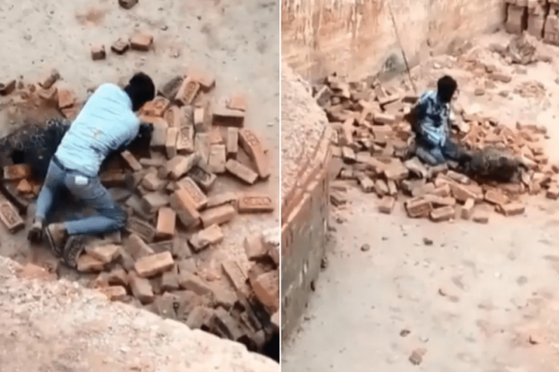 Рабочий чистил печь для термической обработки кирпичей. Леопард прятался в дымоходе, пока Гаутам собирал золу. Внезапно хищник напал, видимо, почувствовав угрозу.