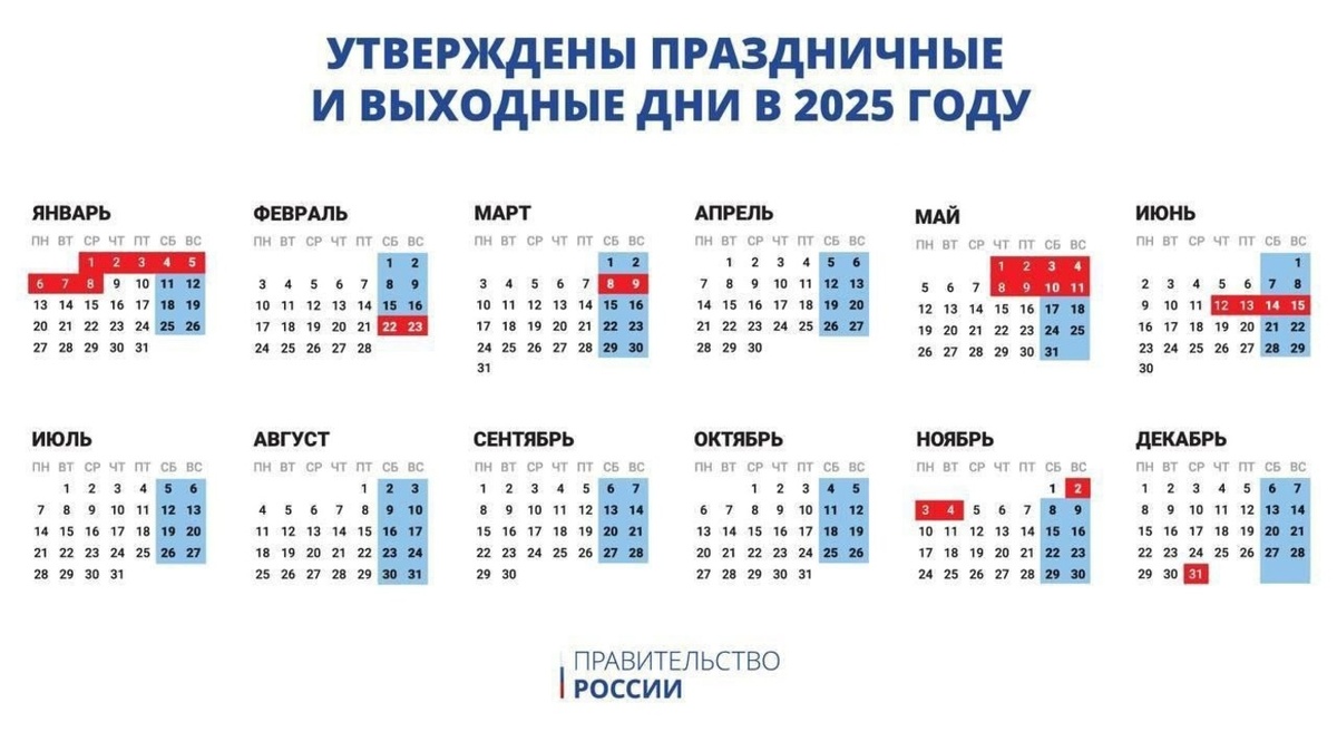 Календарь праздничных дней 2025 года. Фото: правительства России