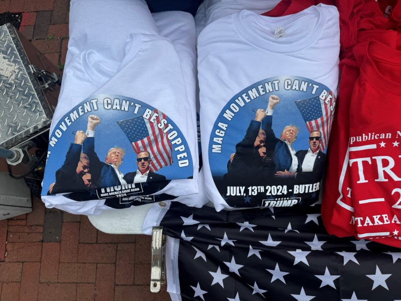 В интернете также стали публиковать кадры с мест торговых точек, где продают футболки с изображением экс-президента после стрельбы.