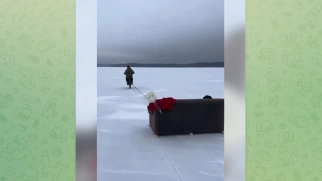 Подростки прокатились на диване по замёрзшему озеру в Подмосковье