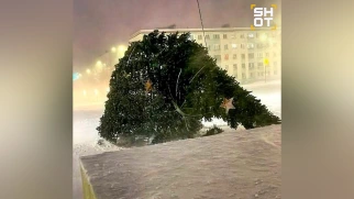 В Мурманске из-за снегопада падают деревья, закрыт аэропорт.